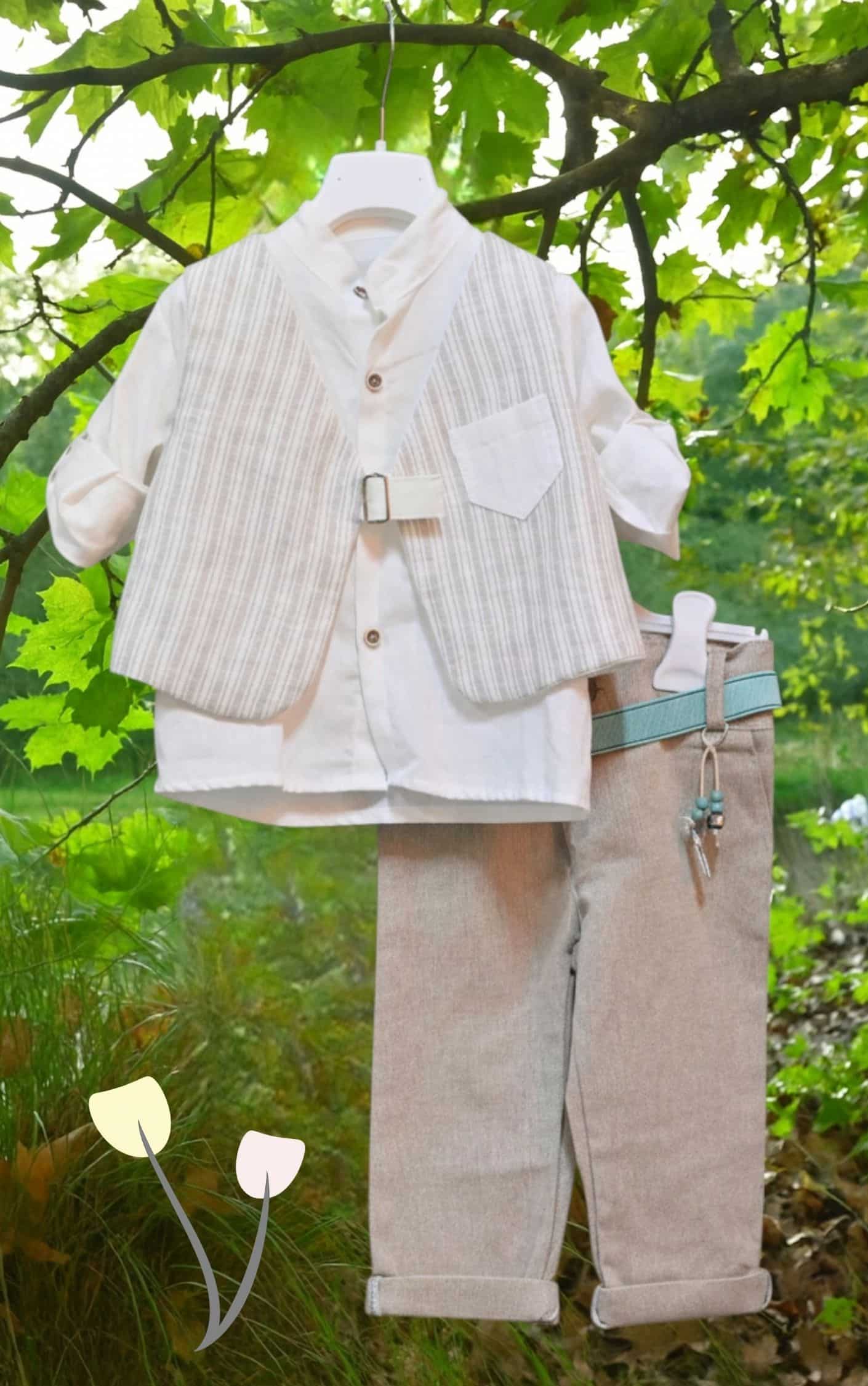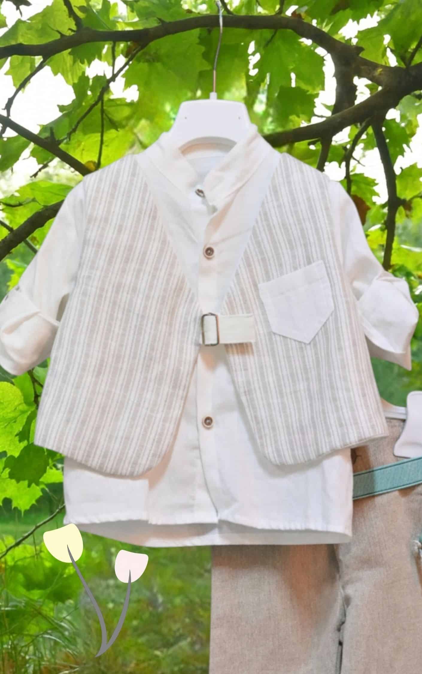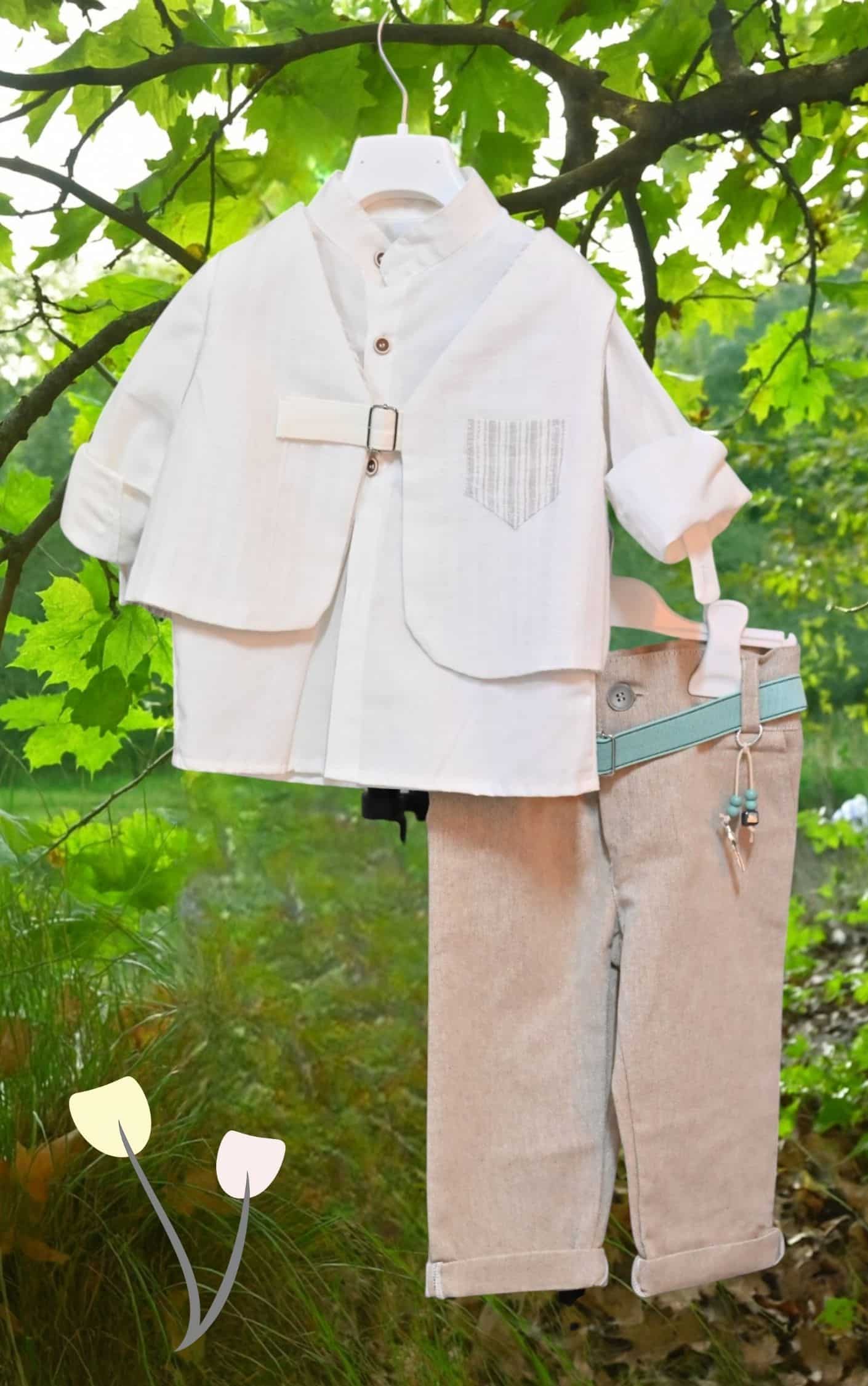 Το λινό κοστούμι Πύριμος – Calm Horizon 10080/10 αποτελεί ιδανική επιλογή για βάπτιση, καθώς συνδυάζει κομψότητα και πρακτικότητα. Ταυτόχρονα, ταιριάζει απόλυτα σε καλοκαιρινές εκδηλώσεις, προσφέροντας ένα σύνολο που ξεχωρίζει για την απλότητα και τη φινέτσα του. Με αυτό το κοστούμι, δημιουργείς μια εμφάνιση που αποπνέει φυσική πολυτέλεια και προσοχή στη λεπτομέρεια.